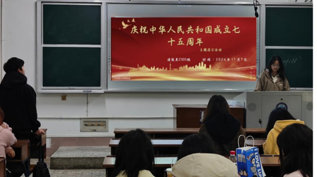 11月1日至11月10日,建院学子约800余人次于16教开展了以“庆祝中华人民共和国成立75周年”为主题的团日活动。回顾这七十五年来,祖国发生了翻天覆地的变化,激发青年一代的爱国热情。
