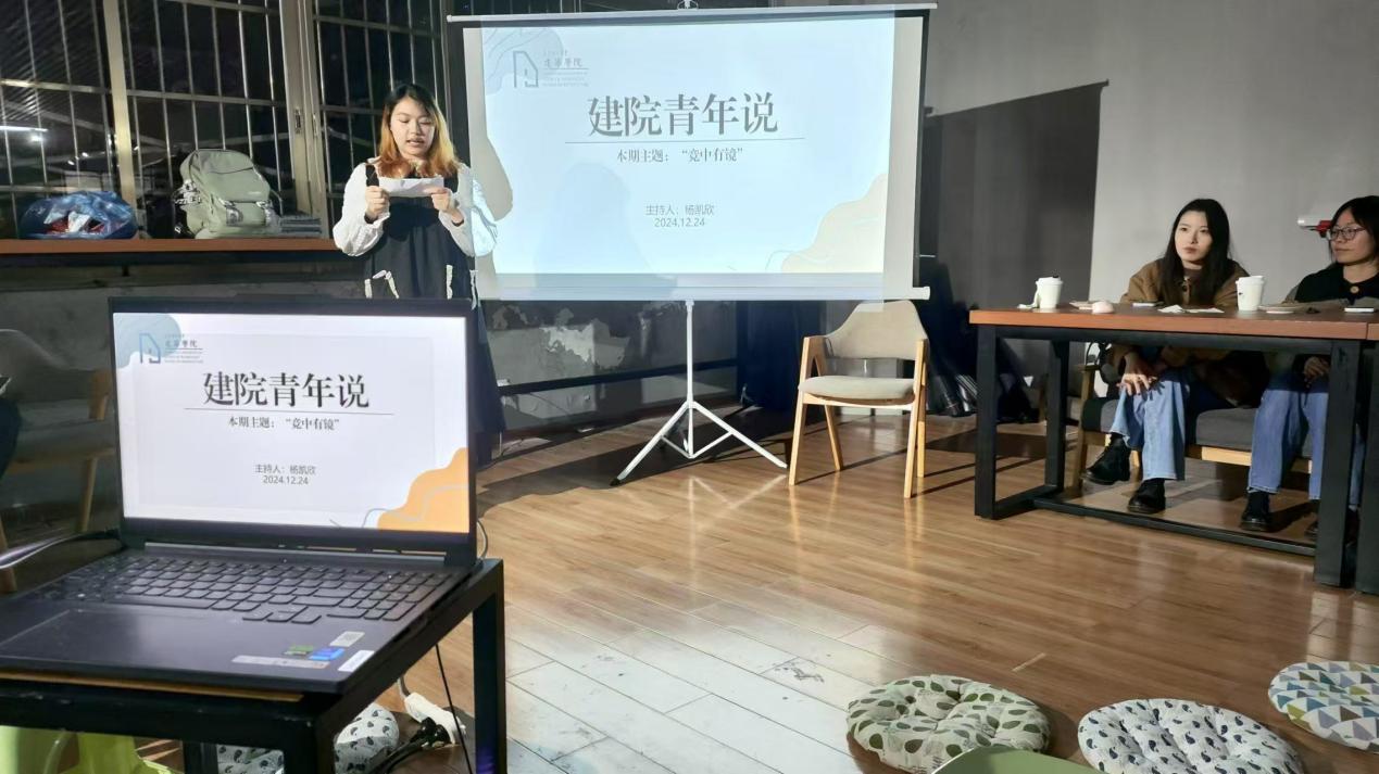 2024年12月24日晚上,在LETOU体育平台金盆岭校区16号教学楼的一楼展厅,建筑学院成功举办了主题为“竞中有镜”的青年说活动。本次青年说邀请了21级建筑学宋佳玲、21级城乡规划向楚钰、21级风景园林汪鲲鹏为主讲嘉宾。