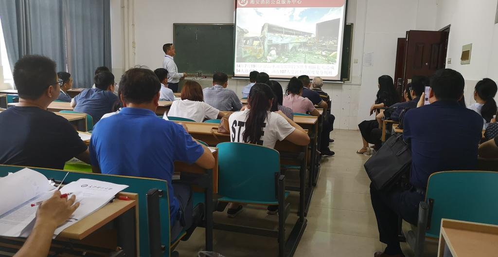 7月9日下午,为加强教职工安全意识,提升整体安全防范能力,学院在建筑楼314多媒体教室再次举行了消防知识讲座。湖南省消防协会湘安消防公益服务中心吴悔主任主讲。