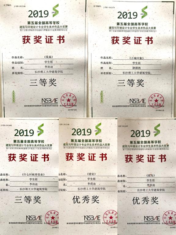 2019年12月27日,在黑龙江哈尔滨东北农业大学,教育部高等学校建筑学专业教学指导分委员会举办 “第十五届全国高等学校建筑与环境设计专业美术教学研讨会”暨“第五届全国高等学校建筑与环境设计专业学生美术作品大奖赛”。由我院建筑美术教学团队指导的学生作品,最终在所有参赛的近两千份作品中获得三等奖 3项、优秀奖2项的优异成绩。李洁、殷俊两位老师获得“优秀指导老师”。
