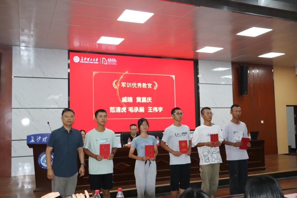随后,院长杨瑛向优秀教官分发荣誉证书,党委书记熊鹰、副院长 (主持工作)许建和向军训先进个人分发荣誉证书,副院长周晨向军训内务卫生优秀寝室代表分发荣誉证书,受表彰代表合影留念。