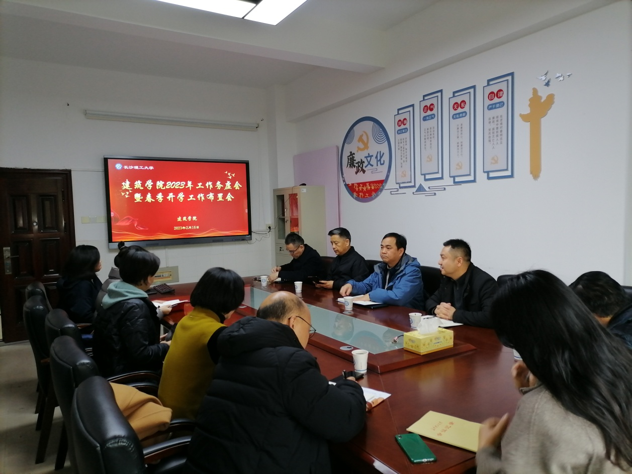 2月16日上午,建筑学院在金盆岭校区16教305会议室召开2023年工作务虚会暨春季开学工作布置会,联系学院校领导黄创霞副校长,学院特聘院长杨瑛大师,学院领导班子成员及各系、室、办正副主任、支部书记参加了会议。会议由学院党委书记熊鹰主持。