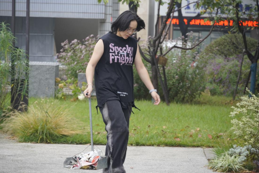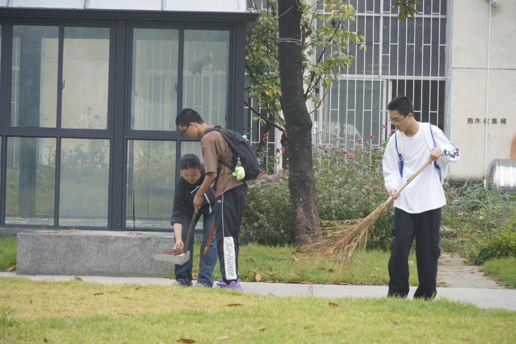 活动期间,在风景园林实践基地以及劳动教育基地,黄皓为新生志愿者们介绍了基地的布局和实践活动的具体内容。志愿者们积极参与,冒着细雨,拿起扫把和铁铲,共同对实践基地展开除草、修剪、培土、堆肥、清扫落叶等清洁工作,经过同学们的共同努力,花园又变得干净整洁起来。