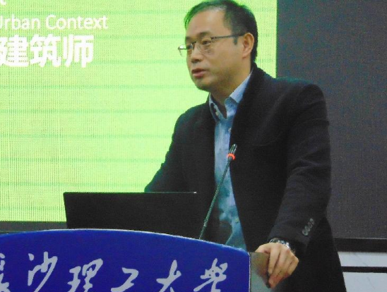 华南理工大学建筑设计研究院、12级校友原玮以形式系统与环境调控一体化研究初探为主题,介绍了跨文化共性:现代建筑的环境立场,杂糅的现代性——20世纪中后期的岭南建筑热带实践。并对形式与环境的关联机制和协同表现,龙归粮所改造工程广州市广府园华南理工大学国际校区做了重点介绍。