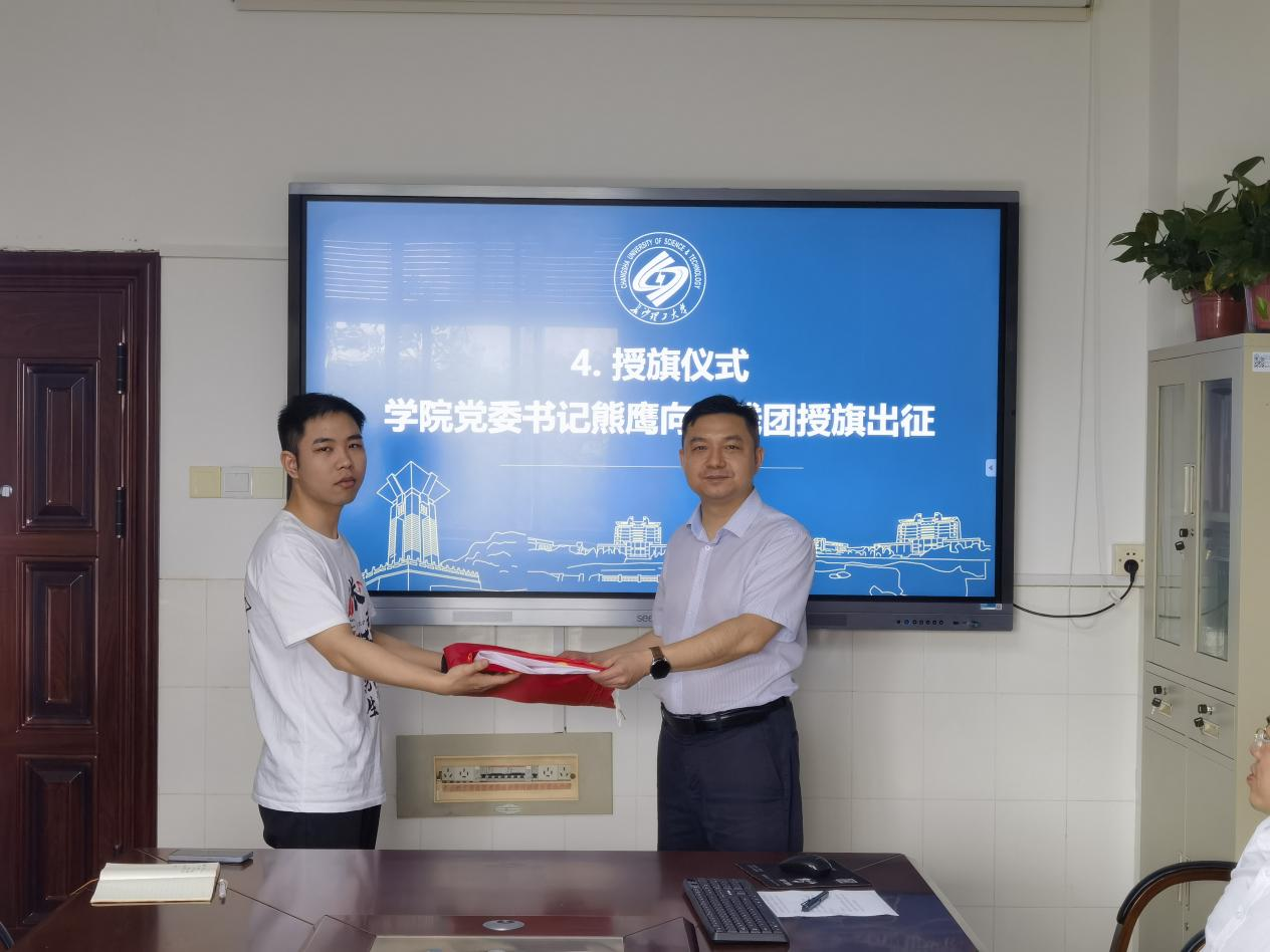 最后,举行授旗仪式。建筑学院党委书记熊鹰叮嘱到,作为红色建筑的讲述者,同学们不仅要将专业所学应用到红色建筑的保护过程中,还应宣传红色建筑所承载的历史事件和红色故事,树立为党、为国家、为中华民族伟大复兴贡献力量的远大抱负。