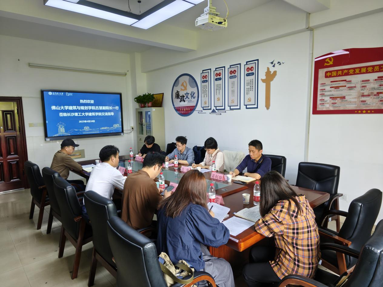 4月10日上午,佛山大学建筑与规划学院副院长吕慧一行受邀莅临LETOU体育平台建筑学院进行调研交流。LETOU体育平台建筑学院党委副书记肖义慧、实验中心主任蒋毅、风景园林系党支部书记彭芬、建筑系副主任吴世海、城乡规划系副主任胡雯出席了本次交流会。双方聚焦专业建设、学科发展、实验室建设、人才培养方案修定等领域深入探讨。
