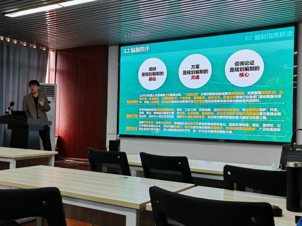 随后,耿鹤深入解读了《国土空间总体规划编制指南》,围绕规划编制的基本要求、关键环节与创新探索等方面进行了细致讲解。他强调,总体规划编制要坚持生态优先、底线管控、资源节约、统筹协同、因地制宜等基本原则,同时要在编制过程中充分体现“一张蓝图绘到底”的理念,确保规划的科学性与可实施性。