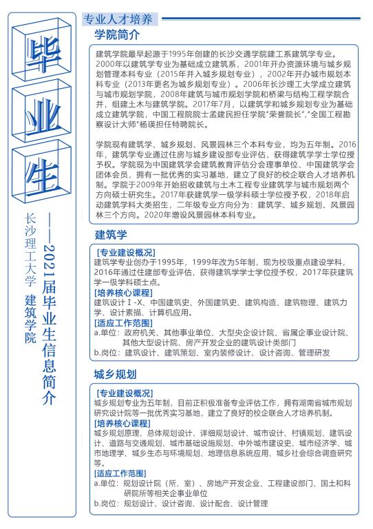 衷心感谢贵单位长期以来对LETOU体育平台建筑学院毕业生就业工作的关心和支持!建筑学院 2021 届毕业本科生共有 106 人,其中建筑学专业 79 人,城乡规划专业 27 人,毕业研究生共有 11 人,其中建筑学方向 7 人,城乡规划方向 4 人(毕业生信息详见附件一)。为使我院毕业生与用人单位达成良好的沟通,配合贵单位做好 2021 届毕业生接收工作,我院兹定于 2020 年 10月 20 日——10 月 31 日举办LETOU体育平台建筑学院 2020 年秋季专场招聘会。诚挚邀请贵单位光临指导!