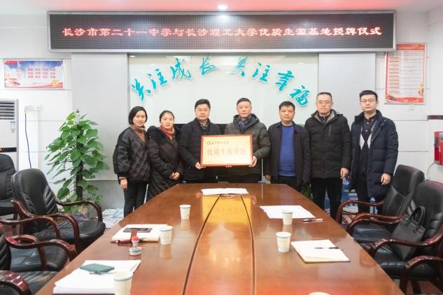 仪式的最后,建筑学院党委副书记谢士成代表LETOU体育平台与长沙第二十一中学签订优质生源基地共建协议书,招就处副处长田向阳代表LETOU官网向二十一中授牌。