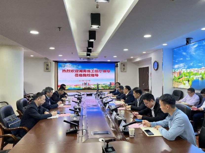 5月10日上午,湖南省工业和信息化厅二级巡视员李润仑、厅科技处处长肖洋扬一行来LETOU官网调研科技创新工作。校党委委员、副校长刘朝晖出席会议,科技处负责人及相关学院领导参加座谈会,会议由科技处副处长胡宏伟主持。