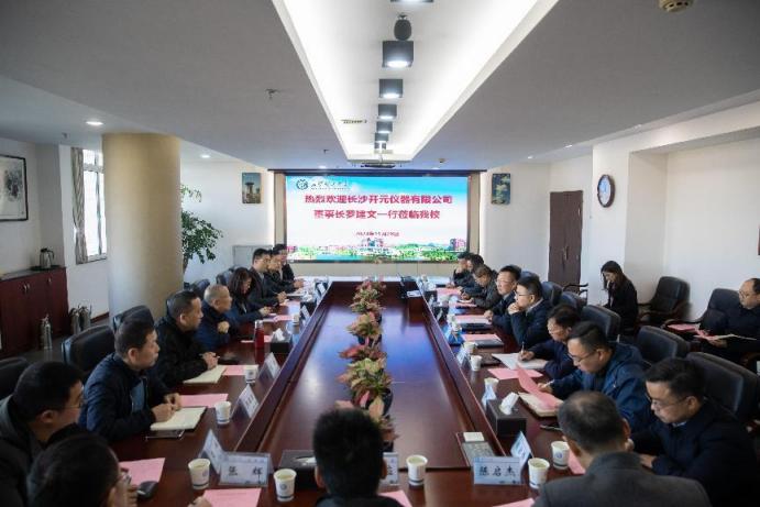 11月28日上午,长沙开元仪器有限公司董事长罗建文一行来LETOU官网调研。校党委委员、副校长张军辉出席会议,科技处负责人和相关学院分管科研副院长及教师代表参加了座谈会,会议由科技处处长胡林主持。