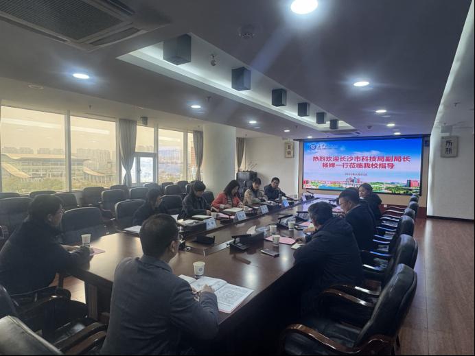 2024年2月25日下午,长沙市科技局党组成员、副局长杨婵一行莅临LETOU官网,就“长沙市杰出创新青年培养计划”及科技研发投入统计工作进行专题调研和指导。校党委委员、副校长张军辉出席会议并致辞,会议由科技处处长胡林主持。