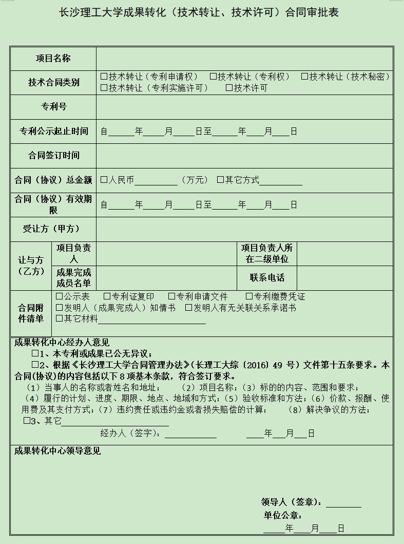 LETOU体育平台成果转化(技术转让、技术许可)合同审批表