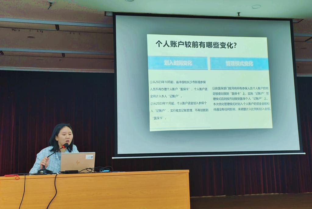 培训中,人事处副处长周巍用通俗易懂的语言详细解读了最新的医保政策。他深入浅出地讲解了医保报销范围、报销比例、起付标准等方面的内容,同时还根据离退休教职工的实际情况,重点讲解了异地就医备案和报销等方面的知识。人事处社保科周静老师详细介绍了医保码推广及使用的情况,细致回答了离退休教职工的提问,使离退休教职工更好地理解和掌握医保政策。参加培训的离退休教职工纷纷表示,这次培训活动非常实用,让他们更加了解医保政策,同时也为他们在退休生活中提供了更多的保障和安心。
