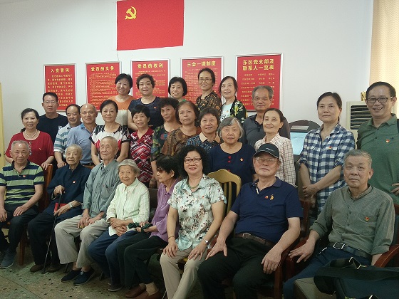 最后,给每位退休党员佩发党徽。大家戴着神圣庄严的党徽集体合影,更加显得光荣神圣。91岁的陈正祥同志特别感慨地说:戴上庄严的党徽,它会时刻提醒我们,注重我们的身份,一辈子努力奋斗跟党走,不做错事,永立新功。