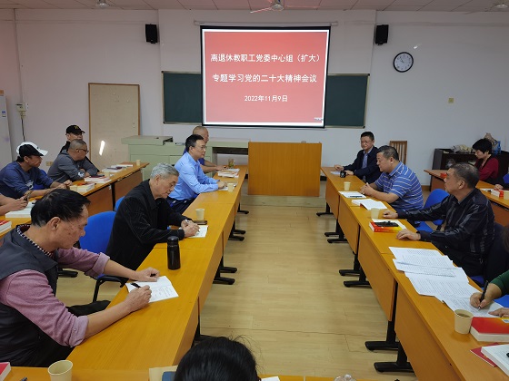 11月9日上午,离退休教职工党委理论学习中心组召开扩大会议,专题学习党的二十大精神。离退休教职工党委成员、离退休中心全体党员干部22人参加。