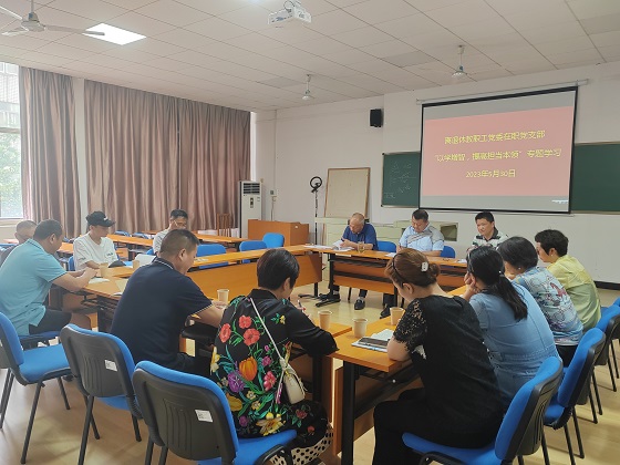 5月30日下午,离退休教职工党委在职党支部在金盆岭校区第五教学楼408会议室召开“以学增智,提高担当本领”专题学习会议。会议由离退休中心副主任、在职党支部书记唐彬主持。支部全体党员参加。