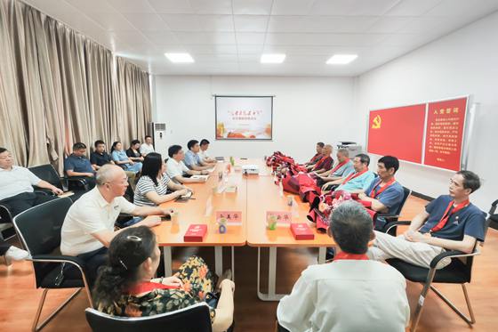 首先,陈曦宣读了荣获纪念章党员名单,刘建民带领全体党员重温入党誓词,随后刘建民、陈曦一一为参加座谈会的8名老党员代表颁发纪念章,将纪念章佩戴在老党员胸前,为老党员送上鲜花。