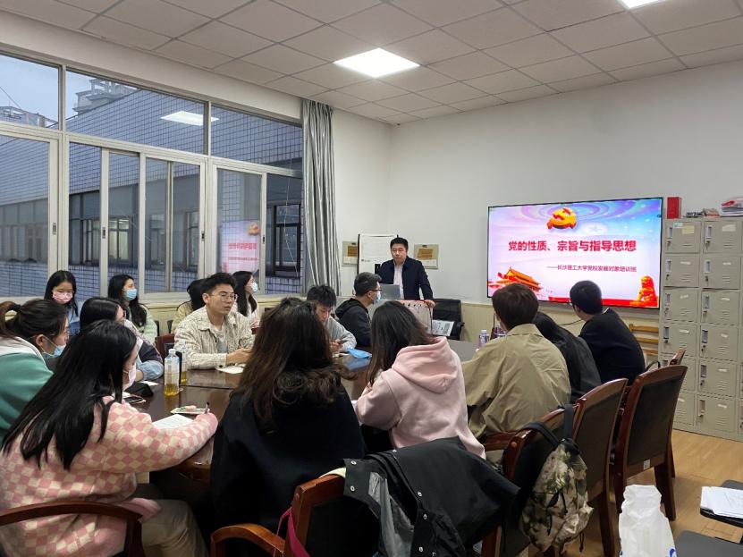 2022年4月18日晚上,以“党的性质、宗旨与指导思想”为主题的马克思主义学院上期发展对象培训班第四次培训活动在金盆岭校区4教501教室顺利举办。本次党课由研究生院副院长兼研工部部长田上主讲,巡堂党员侯彭振、李佳、李悦以及马克思主义学院发展对象全体成员参加。
