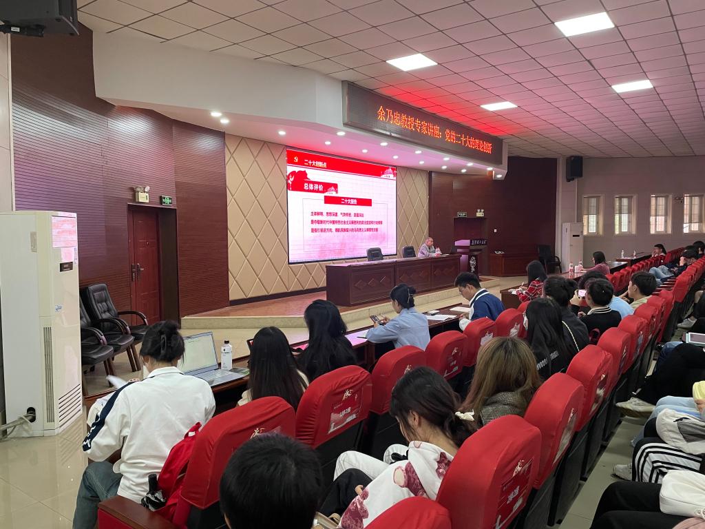 此次主题党课主要围绕着党的二十大报告的总体评价、党的二十大的创新点以及如何学习党的二十大展开。首先,余乃忠教授表示党的二十大报告是主题鲜明、思想深邃、气势恢宏、意蕴深远的一次报告,是夺取新时代中国特色社会主义新胜利的政治宣言和行动纲领,是指引前进方向、领航民族复兴的马克思主义纲领性文献。紧接着,余乃忠教授详细地为大家讲解了党的二十大报告中的创新点,其中包括三个务必、归根到底是两个“行”、党的中心任务、中国式现代化、中国式现代化的本质要求等十五个创新点。最后,余乃忠教授对如何学习党的二十大精神进行了深刻阐述,因为党的二十大精神内容十分丰富,既有政治上的高瞻远瞩和理论上的深邃思考,也有目标上的科学设定和工作上的战略部署,这些是相互联系且有机统一的内容,所以学习贯彻党的二十大精神必须在全面把握上下功夫。