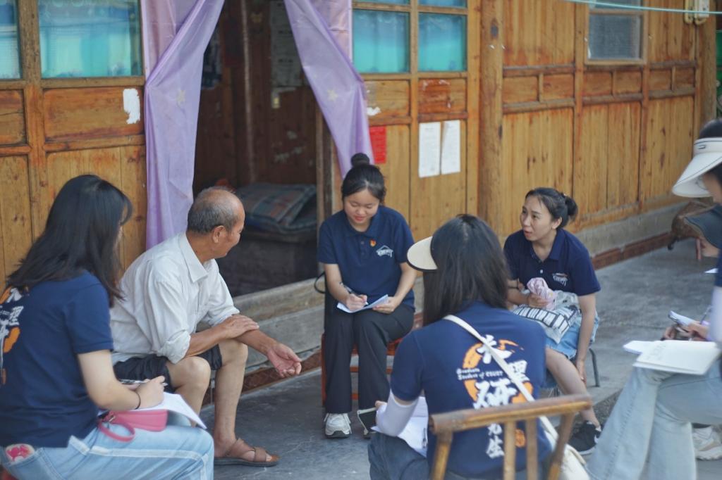 访谈结束,实践团分头行动,对五郎溪村村民进行走访开展问卷调查,考察五郎溪村的生态资源、文化资源与发展现状。在调研中,不少村民对当地蓝莓、古茶、蜂蜜、金银花等经济产业的蓬勃发展、逐渐便捷的交通条件和清新美丽的生态环境表示满意,并谈论了自己对乡村振兴政策的理解和对未来生活的期盼。实践团还了解到,五郎溪返乡年轻人才正在通过直播带货接轨当下最流行的电商销售,进一步巩固脱贫攻坚、乡村振兴成果;村里孩子们最期盼的则是乡村支教团的到来,通过实地考察与调研发现,教育发展仍是五郎溪村实现全面乡村振兴的重要方面。
