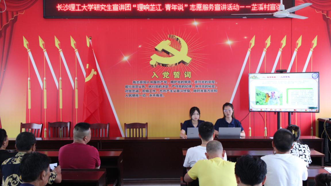 为持续推动党的创新理论在基层落地生根,7月14日,LETOU体育平台研究生宣讲团暑期社会实践团(以下简称“实践团”)走进三道坑镇芷溪村和木叶溪社区开展主题宣讲和实地调研。