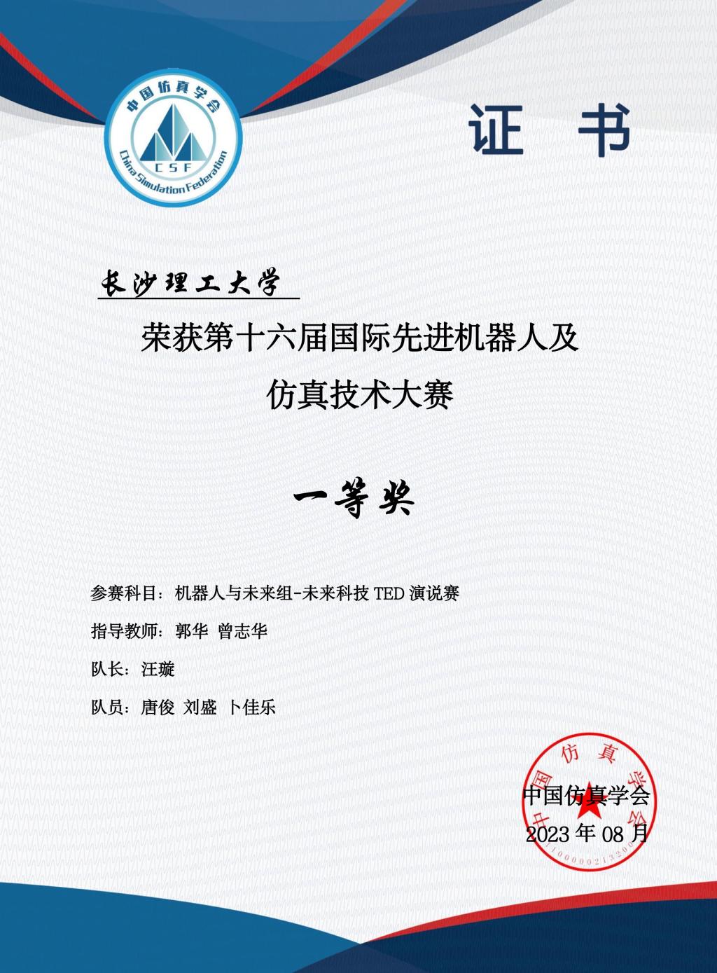 第十六届国际先进机器人及仿真技术大赛于近日落下帷幕,马克思主义学院竞赛团队积极备赛,最终派出6支代表队与中南大学、西安交通大学等高校的1500余支代表队同台竞技,荣获一等奖1项、二等奖1项、三等奖4项。其中,由马克思主义学院郭华老师和文学与新闻传播学院曾志华老师指导,汪璇同学担任队长,唐俊、刘盛等同学参与的“马克思说得对”队获得国际先进机器人及仿真技术大赛“未来科技TED演说赛”国赛一等奖。