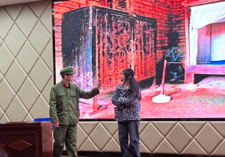 宣讲会的最后,情景剧《我与雷锋的那些日子》将现场气氛推向了高潮。剧中,大学生小雨初对“无私奉献”抱有疑虑,一次偶然机会“穿越”至雷锋时代。在那里,她亲眼见证了雷锋如何将这一崇高精神融入生活的每个细节,温暖他人,点亮心灵。深受触动的她,回到现代后决定亲身实践,积极参与志愿服务,传承雷锋精神。情景剧结束后,现场还设置了有奖知识答题环节。同学们热情高涨,积极参与。