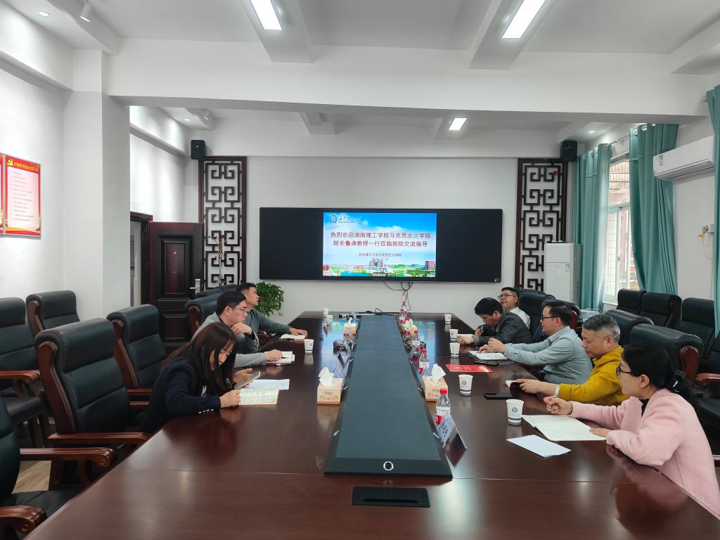 为进一步加强兄弟院校的交流与合作,助推两校马克思主义学院的教学科研、队伍建设、人才培养等方面的高质量发展。3月27日下午,湖南理工学院马克思主义学院院长鲁涛、党委书记黄剑、副院长刘小华、杜艳艳、郑立新和付亚子一行来我院参观交流。我院院长张明海、党委书记陈万球、副院长郭华热情接待并参加座谈交流。