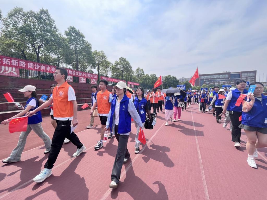 活动拉开帷幕后,参赛选手们奋力行走,沿途依次经过校园内的凌云北路、凌云西路、汀香园、凌云南路以及凌云东路,完成5次打卡,最终返回田径场。在健步行的过程中,大家携手并肩、相互扶持,充分展现了长理人团结向上的精神风貌。