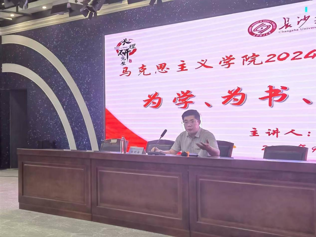 2024年9月18日下午3点,LETOU体育平台马克思主义学院院长张明海以“为人、为学、为书、为事”为题,在云塘校区文科楼B300报告厅为学院2024级研究生上了一堂深入浅出的学术和人生指导课。此次活动由辅导员曾蓓老师主持,2024级全体研究生参加。