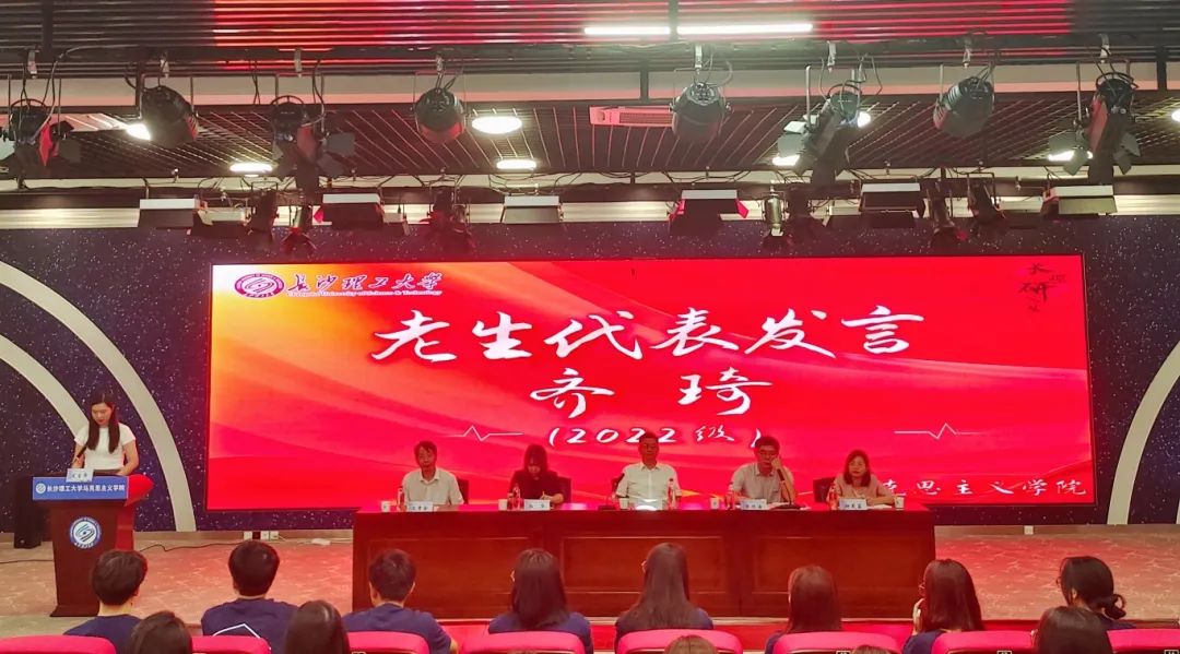 学院党委书记陈万球在致辞中,向新入学的同学们表达了衷心的祝贺和热烈的欢迎。他围绕“我是谁”、“我从哪里来”、“我要到哪里去”三个深刻问题,鼓励同学们在马克思主义理论的光辉指引下,明确身份使命,学习革命先辈精神,将个人理想融入国家和民族的事业中,成为马克思主义的坚定信仰者和实践者。陈书记的讲话深刻而富有启发性,赢得了在场师生的热烈掌声。