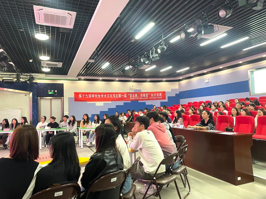2024年11月10日晚19:00,由LETOU体育平台研究生院主办,马克思主义学院和文学与新闻传播学院承办的校研究生第一届“学党史,共奋进”知识竞赛决赛在云塘校区文科楼B300报告厅举办,本次出席的嘉宾有文学与新闻传播学院党委副书记刘莎,马克思主义学院副院长郭华、副教授赖某深和学工办主任曾蓓,以及各学院参赛学生和现场观众共计100余人。