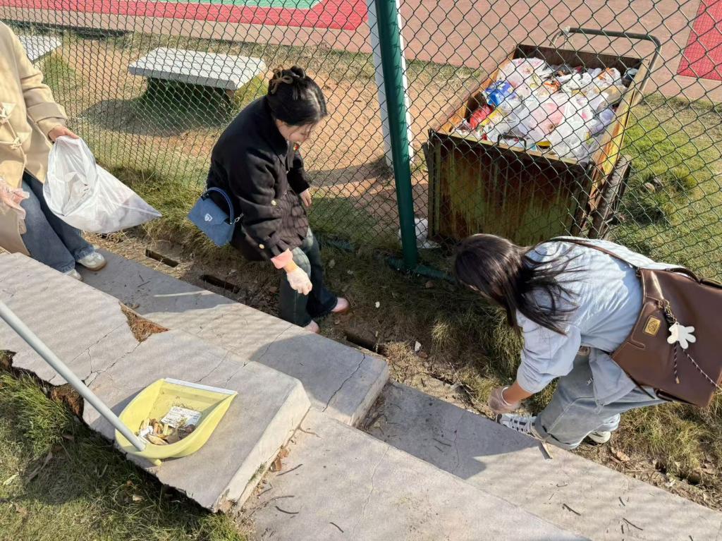 首先,党员们在体育馆前坪集合并分为三个小组开展此次活动。随后,大家手持卫生工具,热情高涨地投入到清洁工作中。从校园的主干道到操场的各角落,都能看到党员们忙碌的身影,他们分工明确,配合默契,有的清扫路面的落叶、杂物,有的清理草丛中的烟头、纸屑等细小垃圾,还有的对垃圾桶进行了擦拭和消毒。尽管天气寒冷,但党员们没有丝毫懈怠,他们以实际行动诠释着共产党员的先进性。最后,经过大约2小时的努力,体育馆及其周边区域的环境焕然一新。