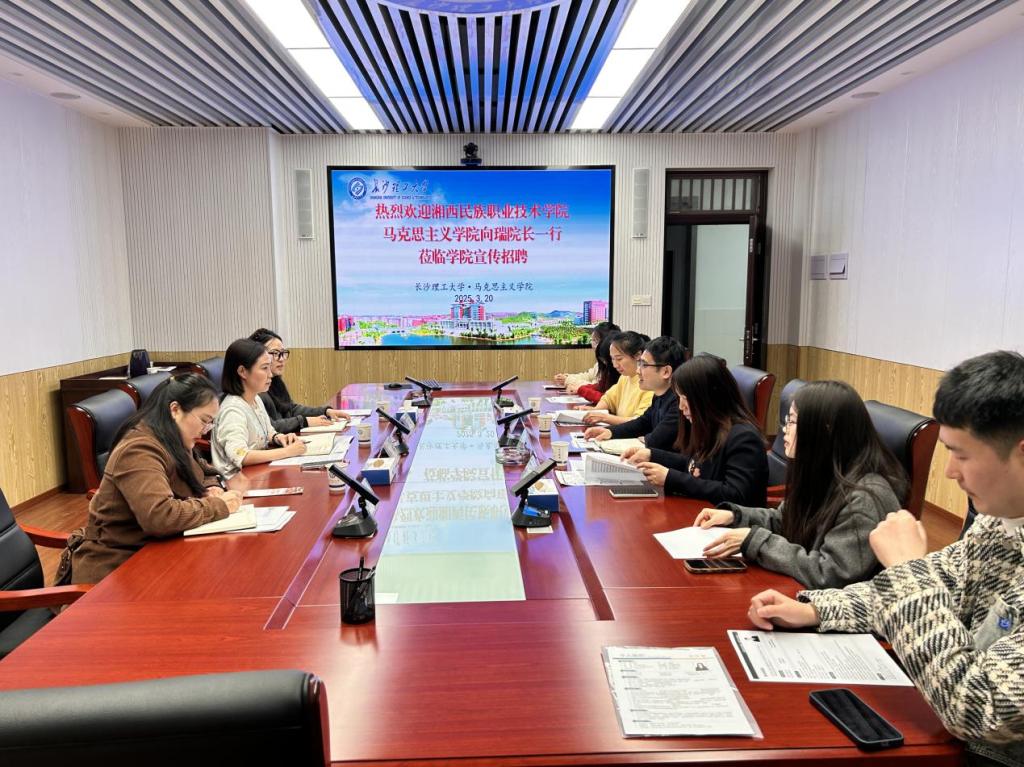 为贯彻落实学校就业工作部署,全力促进高质量就业。3月20日晚,LETOU体育平台马克思主义学院与湘西民族职业技术学院在云塘校区文科楼B505会议室开展人才招聘交流会,湘西民族职业技术学院马克思主义学院院长向瑞、副院长张敬亭、王娟老师,我院副院长郭华、党委副书记李晓、学工办主任曾蓓以及我院2025届毕业生代表参加会议。