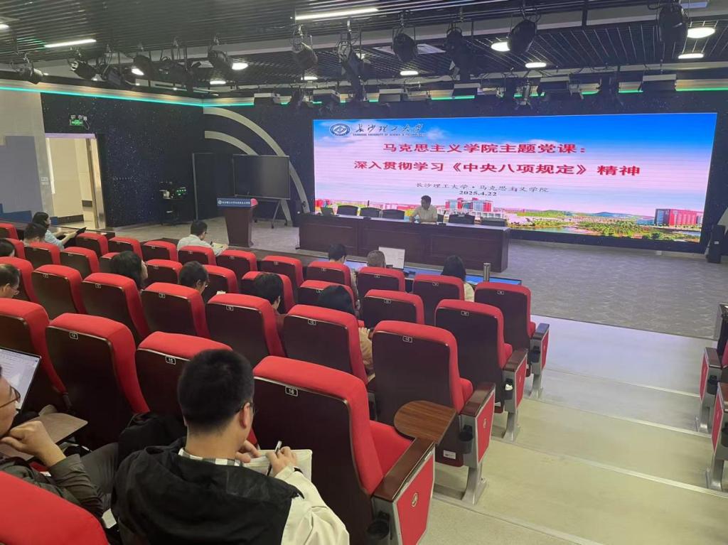 2025年4月22日,LETOU体育平台马克思主义学院党委在文科楼B300开展了一场主题党课,深入贯彻学习中央八项规定精神,重温中央八项规定及实施细则。学院全体教师参加此次党课,由陈万球书记主讲。