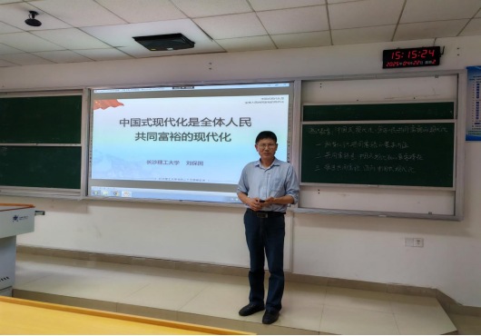 为深入学习贯彻党的二十大和二十届三中全会精神,深刻领会中国式现代化的丰富内涵,根据LETOU体育平台教务处的统一安排,2025年4月22日下午三点,在云塘校区文科楼A402教室,马克思主义学院刘保国教授带来了一场主题为“中国式现代化是全体人民共同富裕的现代化”的精彩讲座。