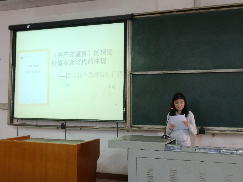 首先,来自马克思主义学院8个不同专业的12位同学围绕“纪念马克思诞辰200周年暨《共产党宣言》发表170周年”这一主题,通过PPT形式介绍了各自阅读的马列经典著作,如《共产党宣言》、《家庭、私有制和家庭的起源》、《关于费尔巴哈的提纲》、《反杜林论》、《1844年经济学哲学手稿》等,并结合自己专业知识和专业特色,分享了阅读收获与体会。五位评委根据展示主题和内容、展示技巧以及PPT制作等逐一给予评分。最终,袁一楠同学荣获一等奖,张可心、张小娟、刘珊三位同学荣获二等奖,付荣、王广赞两位同学荣获三等奖;还有罗苗、邓深林、张娟红、申军辉、罗彦毅、童成帅六位同学表现出色,荣获优秀奖。
