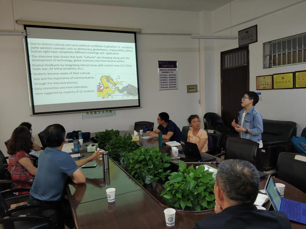 7月10日下午,在云塘校区文科楼B601会议室,马克思主义学院《工程伦理》教研组举行了工程伦理教学研讨会,特别邀请了美国弗吉尼亚大学工程与社会学系教师顾彩璇博士参与研讨。马克思主义学院党委书记易显飞教授、教授委员会主任余乃忠、工程伦理教研组教师等出席,研讨会由院长陈万球教授主持,廖苗博士后对研讨会进行了记录。