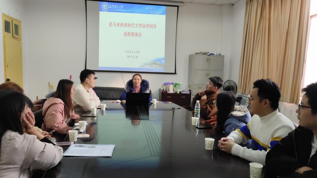 为增强对外交流能力与经验,马克思主义学院于2019年选派12名研究生赴马来西亚沙巴大学交流学习,现已全部安全归国。LETOU体育平台马克思主义学院于2019年12月27日在金盆岭校区4教503教室开展了返校座谈会。此次活动由马克思主义学院曾蓓老师主持,12名交流生参会。