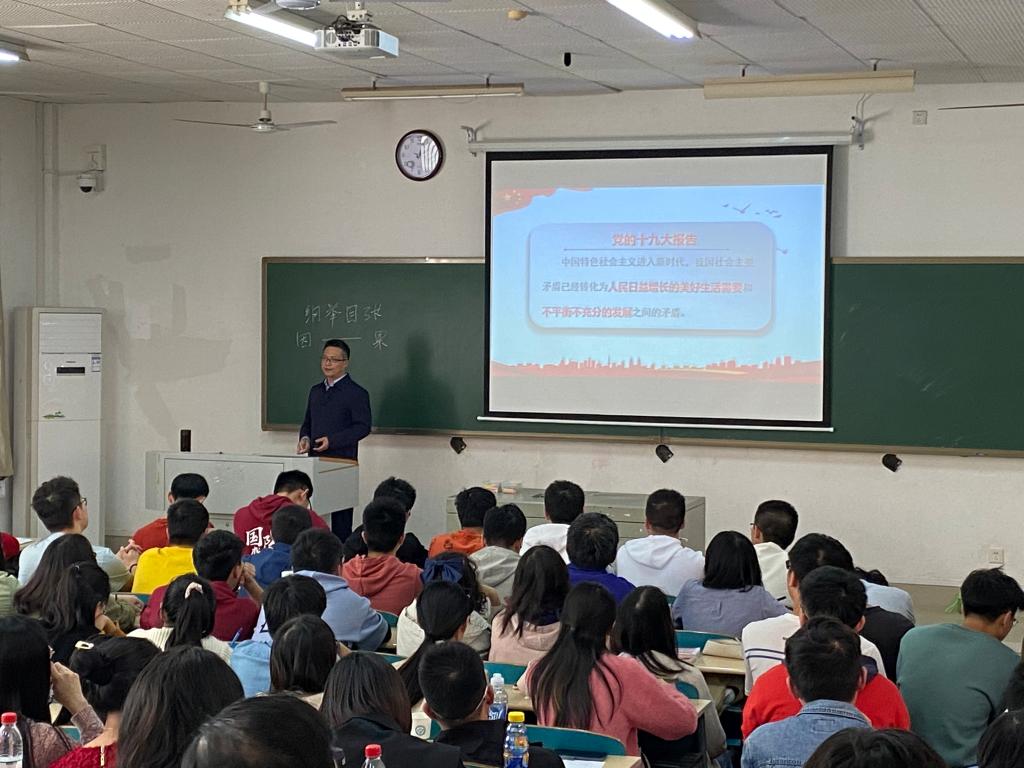 湖南农业大学马克思主义学院院长王健教授主讲第二课:“矛盾转化——为何中国特色社会主义进入新时代?”。10月22日下午,LETOU体育平台综合教学楼B104教室座无虚席,来自全省90多所高校的108多名教师与学生同上一堂课。