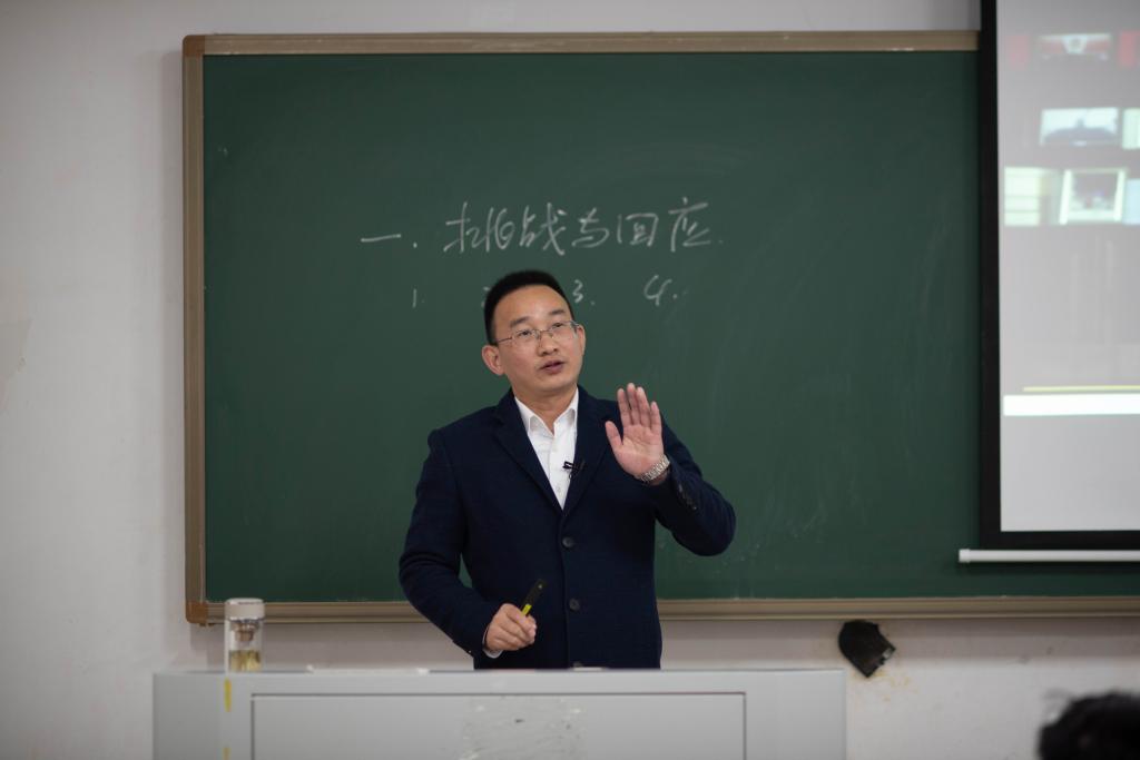 韩平老师从“地球村里的百年未有之大变局”的问题开始,指出新冠肺炎疫情全球大流行,使世界百年大变局加速变化,分析了世界多极化呈现的新态势,分析了建设“持久和平、普遍安全、共同繁荣、开放包容、清洁美丽的世界”的理念与目标,进而跟学生探讨如何积极发展全球伙伴关系。他强调,中国走和平发展道路,是从历史、现实、未来的客观判断中得出的结论,是思想自信和实践自觉的有机统一,是新中国成立以来特别是改革开放以来,经过艰辛探索和不断实践逐步形成的,中国走和平发展道路、倡导合作共赢理念的底线是坚决维护国家核心利益。韩老师鼓励同学们,今日之中国,以雄伟的姿态屹立于世界民族之林,比历史上任何时候更接近于世界舞台的中央,作为时代新人,我们更应该牢记使命,胸怀天下,为把实现中华民族伟大复兴的中国梦和人类社会更加美好的未来,贡献青春力量,书写绚丽华章。