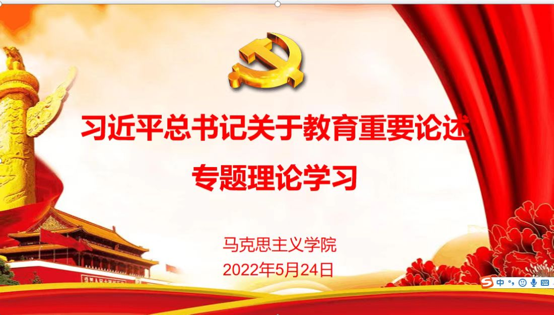 5月24日晚19点30分,马克思主义学院党委组织全院教职工开展习近平总书记关于教育重要论述专题理论的线上学习,本次专题学习由余乃忠教授主讲,学院党委书记易显飞教授主持。