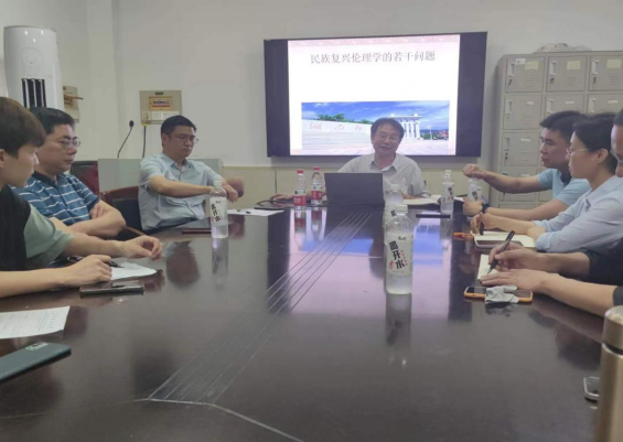 2022年6月17日下午,中国伦理学会第九届理事会副会长、湖南师范大学公共管理学院博士生导师王泽应教授受邀来到马克思主义学院,在LETOU官网金盆岭校区4-503会议室作了题为“民族复兴伦理学的若干问题”的学术讲座。学院党委书记陈万球教授、院长张明海教授,鲁芳教授、蒋显荣教授、艾楚君教授、文贵全博士、刘佳男博士等学院教师和研究生约30人参加了讲座,讲座由陈万球教授主持。