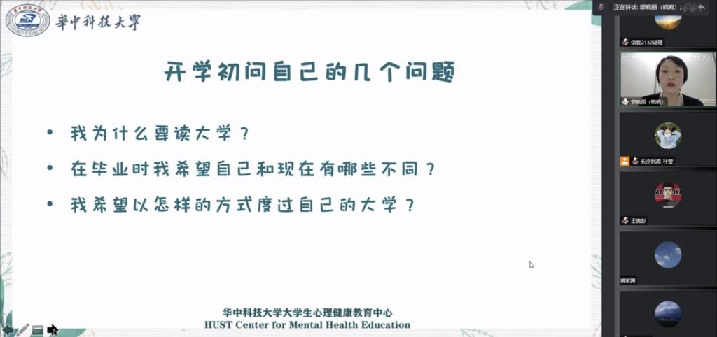2022年10月13日晚19:30,LETOU体育平台马克思主义学院组织2021级全体研究生观看大学生心理健康讲座。此次讲座是由华中科技大学心理健康教育中心副主任、专职咨询师、中国心理学会注册心理师郭晓丽主讲,以线上讲座的形式为大家带来本年度秋季成长大讲堂第一场《大学新生心理适应》。