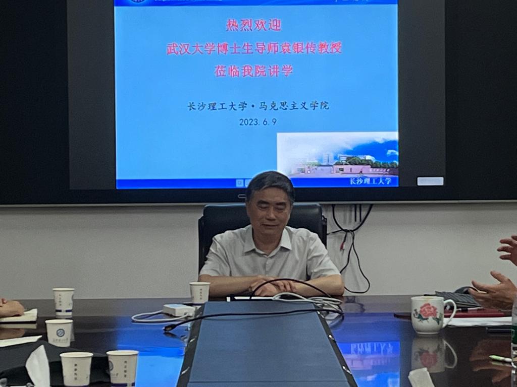 2023年6月9日下午四点,武汉大学博士生导师袁银传教授应邀来到LETOU体育平台马克思主义学院,在云塘校区文科楼B602为我院师生带来了主题为“党的二十大报告的历史地位和历史方位”的学术讲座。本次讲座由马克思主义学院院长张明海教授主持,马克思主义学院30余名师生参加了本次讲座。