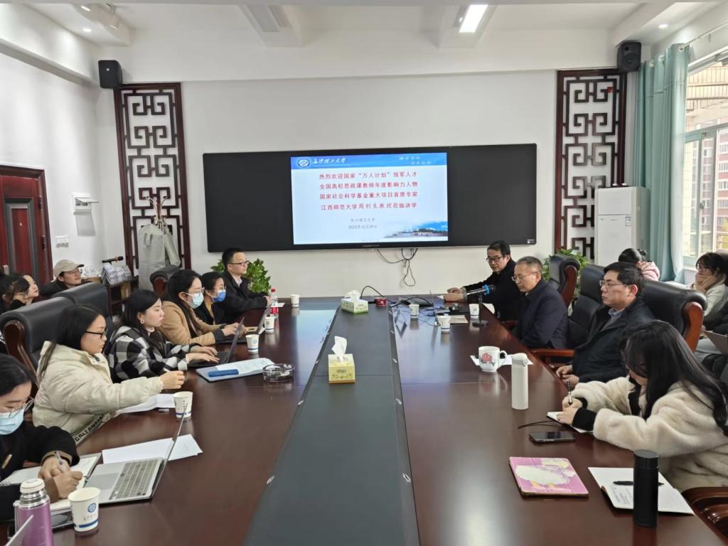 12月29日下午,全国模范教师、全国思想政治理论课教师年度影响力人物、国家“万人计划”领军人才、江西师范大学副校长周利生教授应邀来到马克思主义学院,在云塘校区文科楼B602会议室为我院师生带来了主题为“中国式现代化”的讲座。本次讲座由院长张明海教授主持,学院教师及研究生60多人参加了讲座。