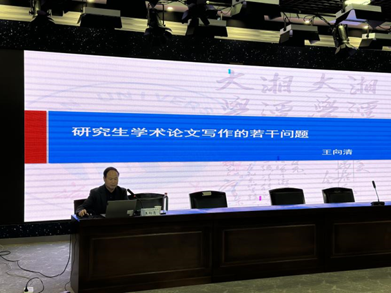 2024年10月29日下午14:30,湘潭大学马克思主义学院二级教授王向清应邀莅临我院,在LETOU官网云塘校区文科楼B300报告厅就 “研究生学术论文写作的若干问题”开展了一场精彩的学术报告。本场报告由马克思主义学院副院长郭华主持,学院教师代表及研一、研二研究生参加。