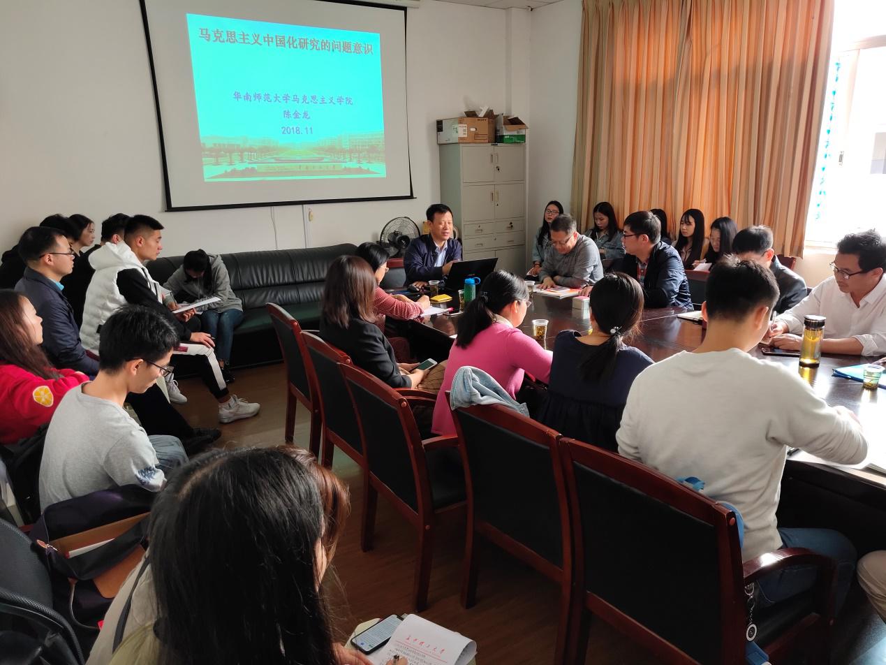 114日上午,教育部特聘教授、中央马工程首席专家、华南师范大学马克思主义学院院长、博士生导师陈金龙教授应邀来到我院,在金盆岭校区4503会议室作马克思主义中国化研究的问题意识”的学术报告学校人文社科处卿定文处长、马克思主义学院张明海副院长、部分教师与研究生听取了讲座本次讲座由张明海副院长主持。