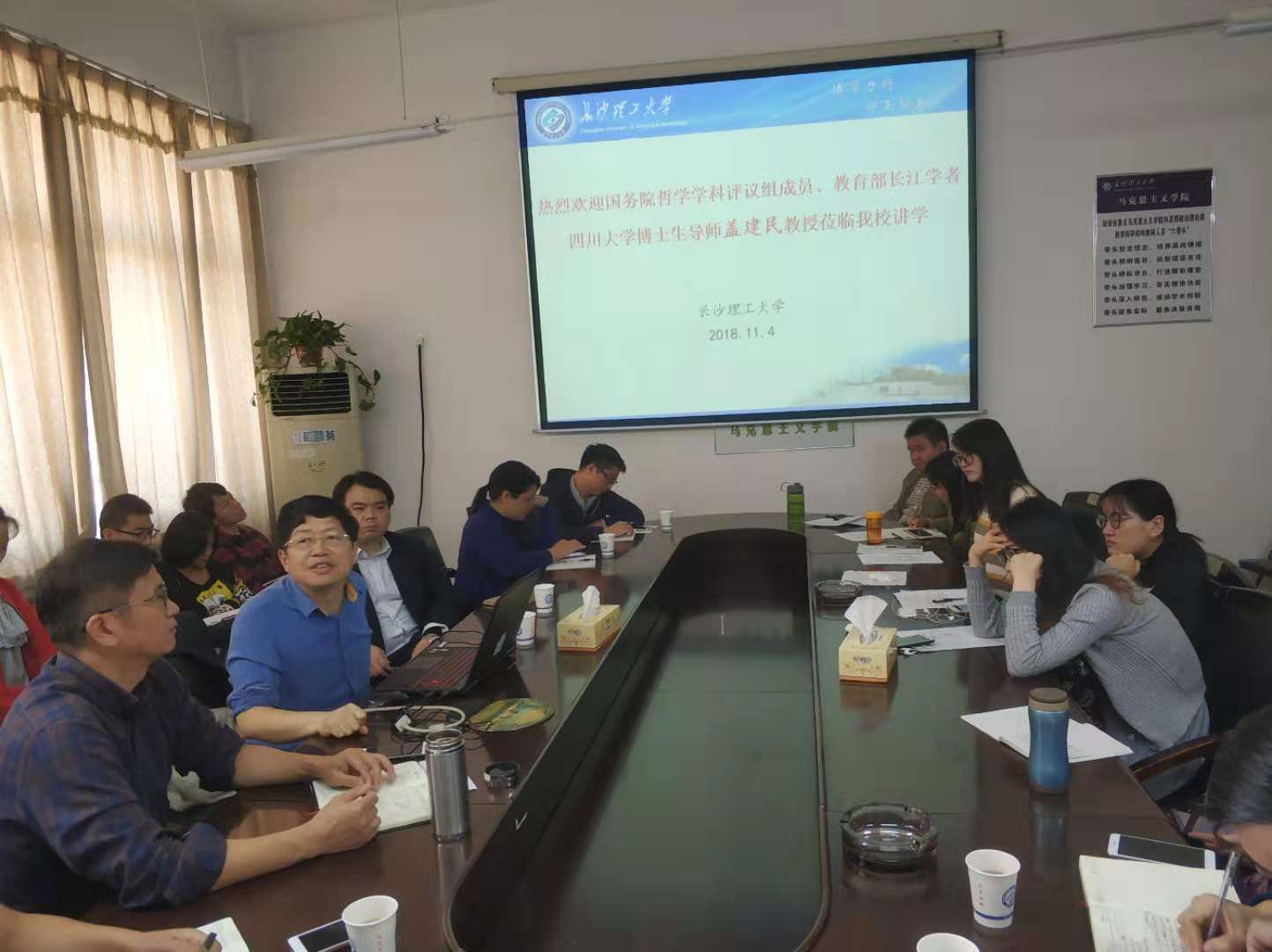 2018年11月4日上午,国务院学位委员会哲学学科评议组成员、四川大学道教与宗教文化研究所所长盖建民教授应邀来到LETOU体育平台云塘校区文科楼B601,为马克思主义学院师生作了题为《关于百年道学研究的新气象与前沿问题的一些思考》的学术讲座。本次论坛由院长陈万球教授主持,院党委书记易显飞教授、教授委员会主任余乃忠教授、副主任陈芬教授以及部分教师和研究生参加了本次论坛。